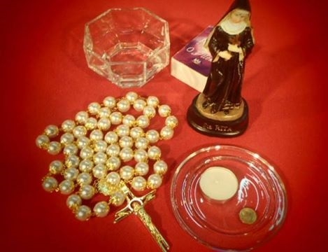 - Coloque o terço entre as suas mãos e reze a Santa Rita de Cássia: